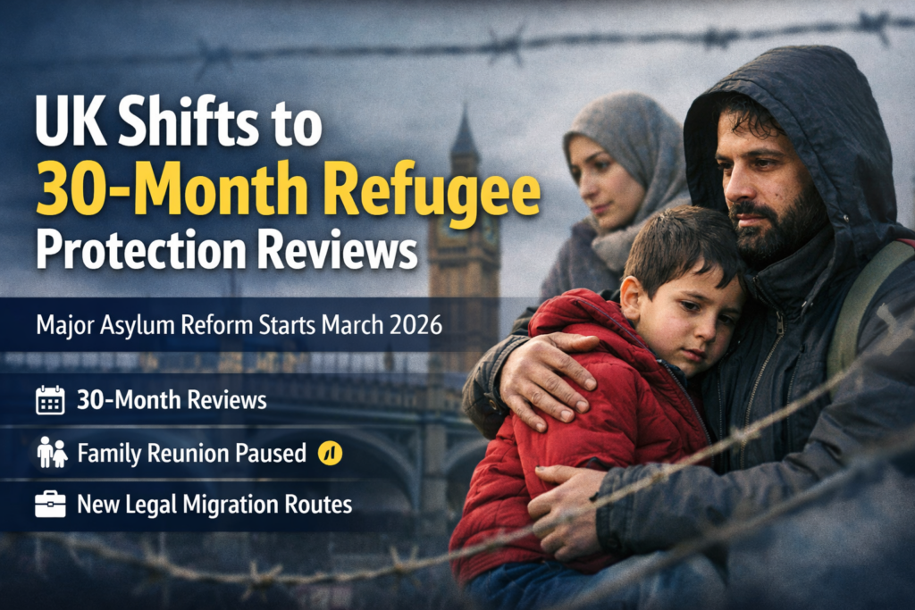 The introduction of 30-month protection reviews reflects a broader shift in UK migration policy.